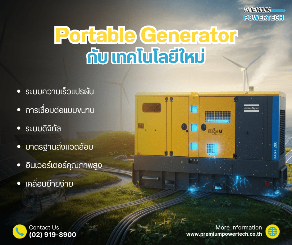 ในการทำงานแบบเคลื่อนที่ ไม่ว่าจะเป็น งานอีเวนต์กลางแจ้ง และไซต์งานก่อสร้างมีความต้องการพลังงานไฟฟ้าที่มากขึ้น ทั้งด้านจำนวน แรงดัน และความเสถียร “Portable Generator” หรือเครื่องกำเนิดไฟฟ้าแบบพกพา จึงต้องพัฒนาไปอย่างรวดเร็ว ไม่เพียงแค่ให้ไฟฟ้าใช้งานได้ แต่ยังต้องตอบโจทย์ด้าน ประหยัดพลังงาน, ลดเสียงรบกวน, ปล่อยไอเสียต่ำ, และมีความคล่องตัวสูง